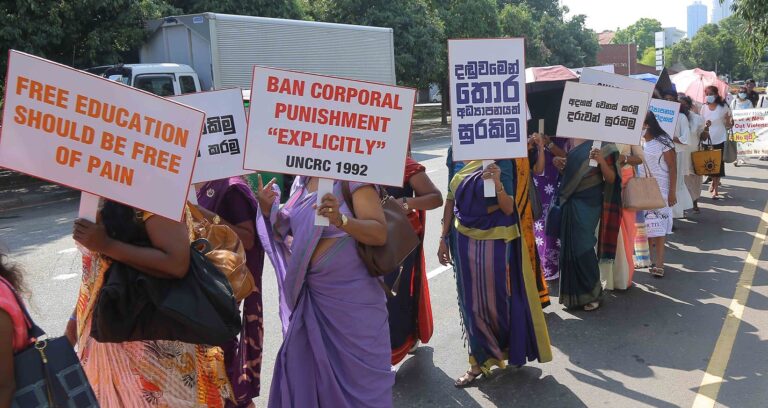 A Study on Child Disciplinary Methods Practiced in Schools in Sri Lanka by the National Child Protection Authority in 2017 revealed that nearly 60% of teachers were unaware of positive discipline methods. These are teachers participating in a walk demanding to end corporal punishment in schools.