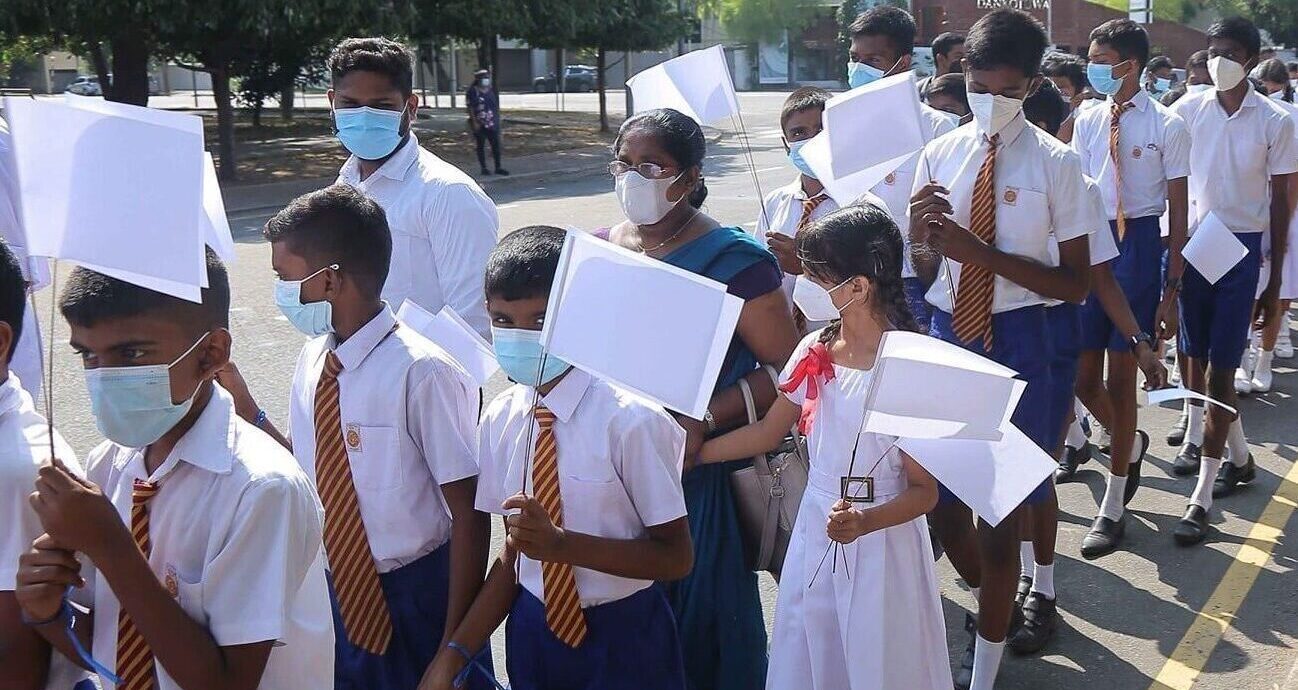 A Study on Child Disciplinary Methods Practiced in Schools in Sri Lanka by the National Child Protection Authority in 2017 revealed that nearly 80% of students are subjected to at least one episode of corporal punishment during one school term. Students walk in solidarity, requesting greater protection.