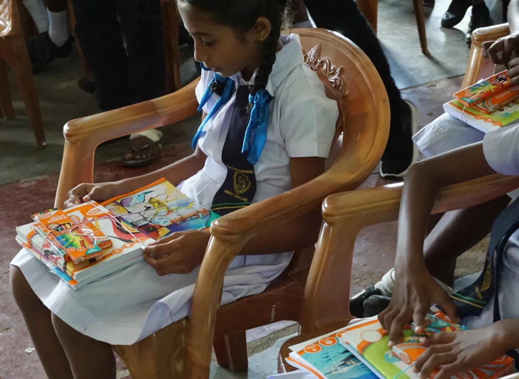 Students thrilled to receive essential study packs.